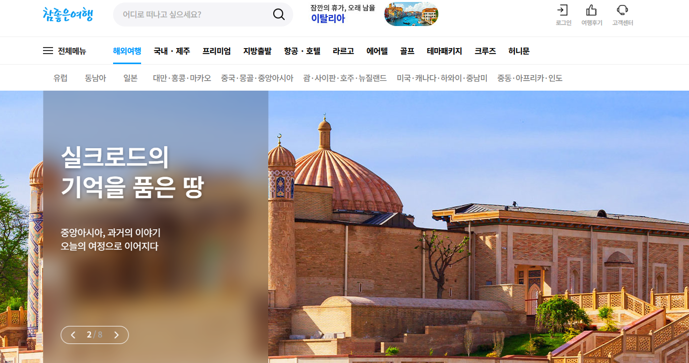 - 해외 패키지 여행 – 유럽·동남아·일본·미주 등 전 세계를 아우르는 패키지 상품